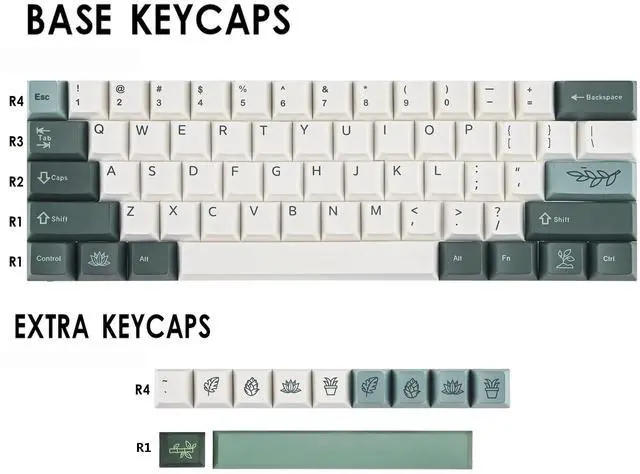 61-Key PBT Cherry Profile Keycaps 60 Percent Dye-sub with 6.25U Space Bar for Cherry MX Switch for 60% Mechanical Gaming Keyboard, Only Keycaps (72-Key Botanical)