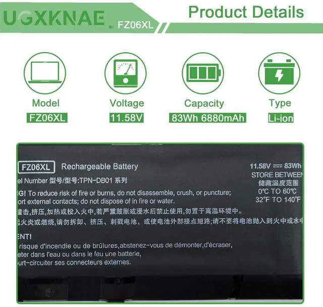 Specifications: Model Name: FZ06XL standard Rechargeable Li-ion Battery; Battery Type: Lithium_ion; Voltage: 11.58 V; Capacity: 83 Wh 6880 mAh. Color: Black. Packages includes:1x FZ06XL Laptop Battery, 2 x Screwdrivers for easy installation, 1x Instruction