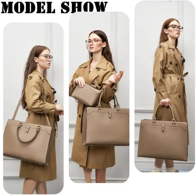 YZAOLL 15.6 Inch Laptop Bag for Women, Lightweight Vegan Leather Work Tote with Clutch Purse, Water-resistant Business Briefcase - Large Capacity Office Bag for Travel, College Essentials (Gift), Camel