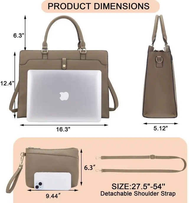 2.12 Pockets for Ultimate Organization:Dedicated thermos holder, mouse pocket, quick access phone slot/work notebook/pen/glasses slots, and separate compartments for tablets and cosmetics,Fits A4 files, Pad, power bank and daily essentials.Matching makeup wristlet clutch purse.
