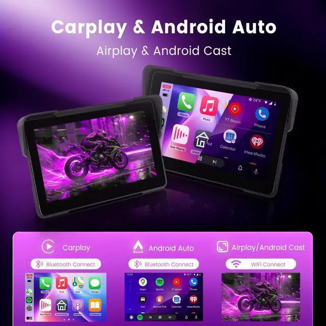 Wireless Carplay & Android Auto& Mirror LinkMotorcycle GPS radio supports you to sync most of the software on your phone to the radio, including WhatsApp, Waze, TikTok, etc. And also supports voice control that you can access the map navigation with the help of Siri or G00gle Assistant, phone calls, music playback, text messaging and more. Free your hands so you can focus on the road and ride safely