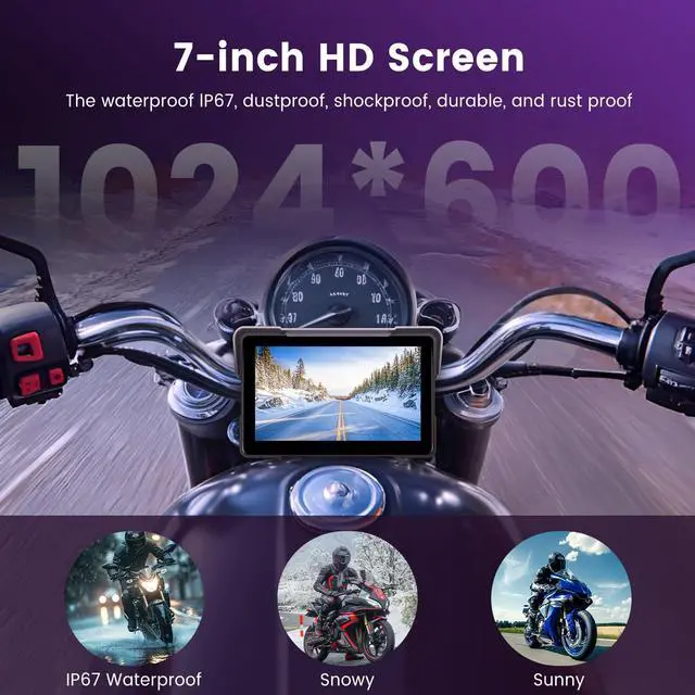 7 Inch IPS Carplay Screen for all Motorcycle Models The waterproof monitor for motorcycle equipped with a 7-inch high-definition IPS touch screen with a resolution of 1024*600, making the visual effect more intuitive and the touch responsive. Support brightness adjustment, that in the outdoor bright light can also provide a smooth using experience. The device also comes with an 64GB SD card that supports reading video and music files