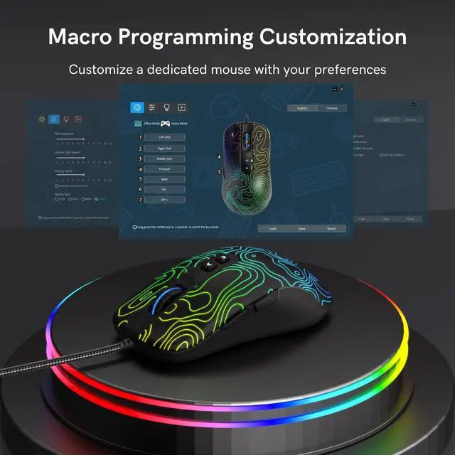 Colorful Contour Pulse Light Effect · Dawn Light]Unique contour design, 7 RGB lighting modes, switch at will. Light filters through the hollowed-out lines, resembling lava veins, creating a unique atmosphere of light pollution for desktop e-sports.