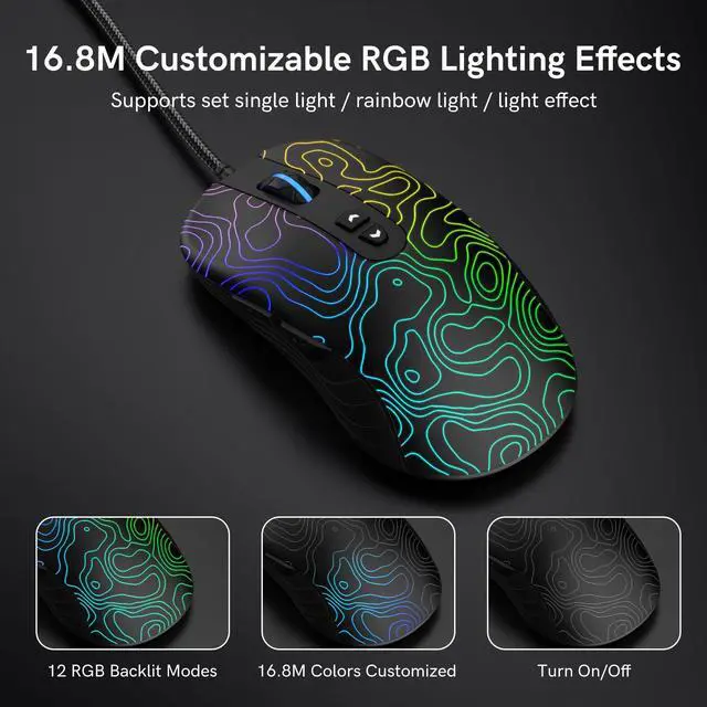 dagaladoo Black Wired Gaming Mouse, 12800 DPI RGB Gaming Mouse with 7 Lighting Effects, PC Gaming Mice Support DIY Keybinding, Mouse Gamer Computer Mouse for Laptop PC Mac Windows, Topographic