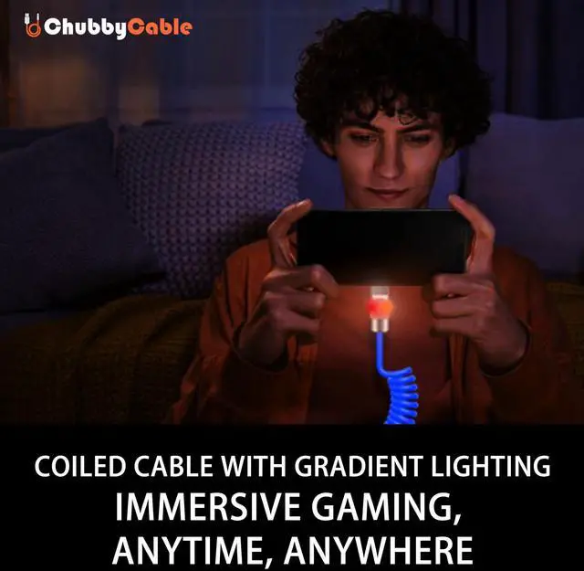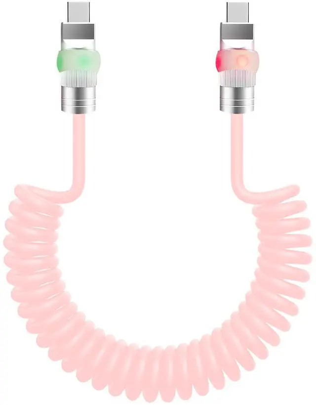 chubbycable Neon Chubby - Neon Glow Fast Charge Spring Cable with Gradient Illumination Coiled USB C Cable for Car, Pink, Type-C to Type-C, 1.64FT - 4.43FT