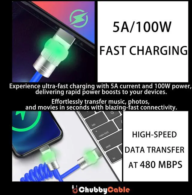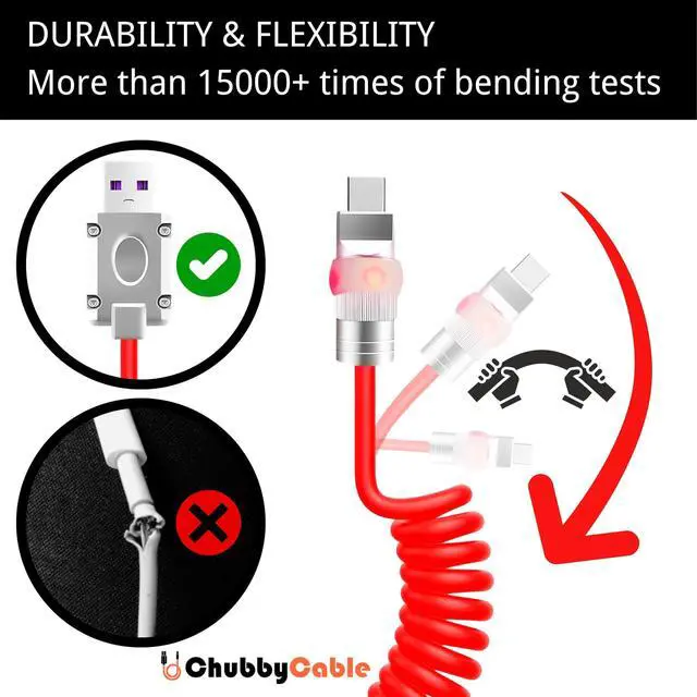 ULTRA-ELASTIC SPIRAL DESIGN: Our innovative charging cable boasts an ultra-elastic spiral design, ensuring hassle-free handling and storage. This coiled USB-C cable integrates seamlessly with your fast charger, offering convenience without compromising on durability