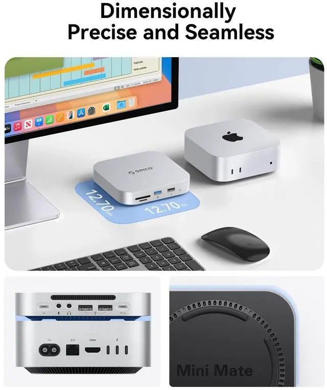 Perfect Match for Mac Mini M4 Sleek, Seamless, Smart. Crafted with a premium aluminum finish that mirrors your Mac Mini M4, this stand hub blends in beautifully while delivering expanded functionality. The design helps reduce Wi-Fi interferenceensuring better wireless performance and a clutter-free workflow.