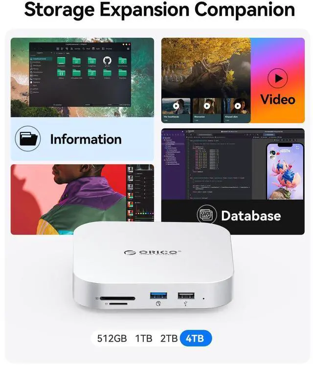 ORICO MiniMate SE Mac mini M4 2TB Storage & Docking Station, External SATA SSD (Non-Removable) 5Gbps(480MB/s), USB A*4, USB-C, SD/TF 3.0, 3.5 mm Audio, Includes 2 Cables M4SE