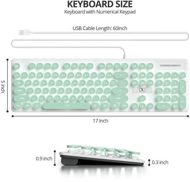 Retro Typewriter Design: This wired retro keyboard with punk round keycaps brings a typewriter feel; full-size layout with a number pad for efficient data entry; The floating-key design ensures comfortable typing; ideal for office, home, and school use
