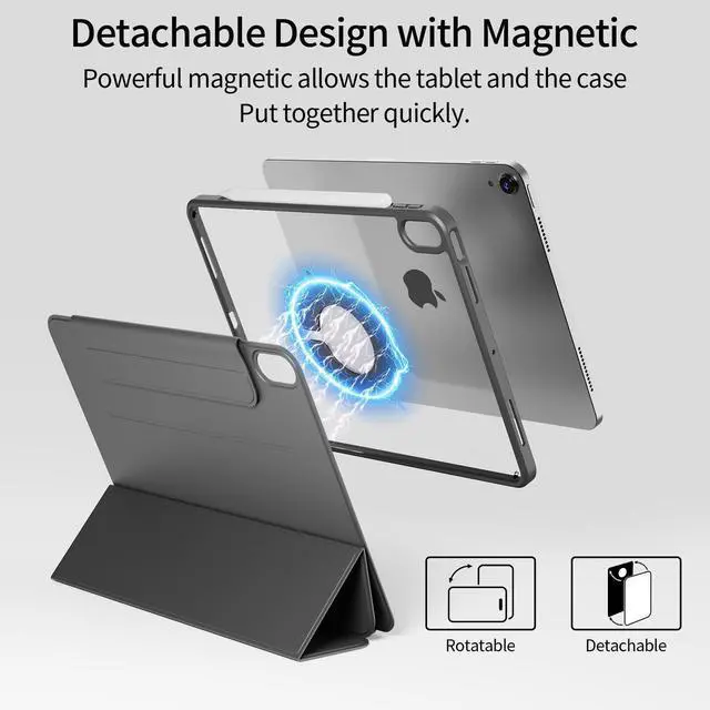 ZOPSGYU for iPad (A16) 11th Generation 11 Inch 2025/ 10th Generation 10.9 Inch 2022 Hybrid Case with Pencil Holder | Detachable Magnetic Cover | Portrait/Landscape Stand | Clear Hard Back, Black