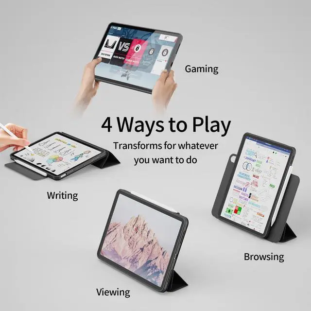 Removable Magnetic Cover - strong magnets in the case let you attach the cover for iPad a16 as a stable stand in landscape or portrait mode, or remove it for better ergonomics while gaming