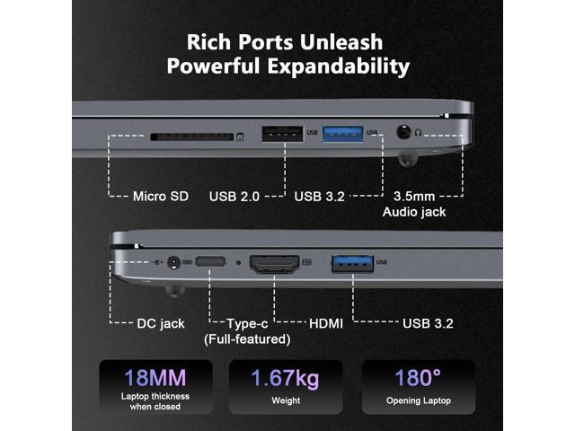 - Full Range of Ports: This laptop is equipped with a wide range of ports. With 1 x USB 2.0, 2 x USB 3.2 ports, 1 x Type_C (fully functional), 1 x H