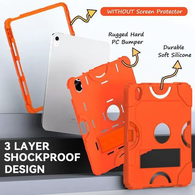 Cantis Heavy Duty Shockproof Rugged Case for iPad 10th Gen 10.9 inch 2022, Orange with Kickstand & Pencil Holder