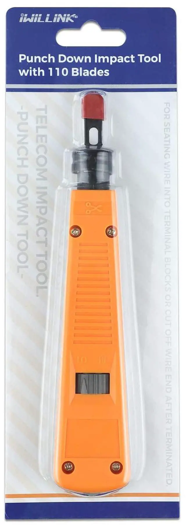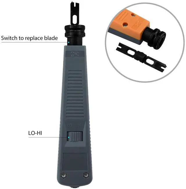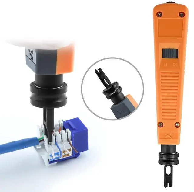 Punchdown tool cuts and terminates cable into patch panel or keystone jack