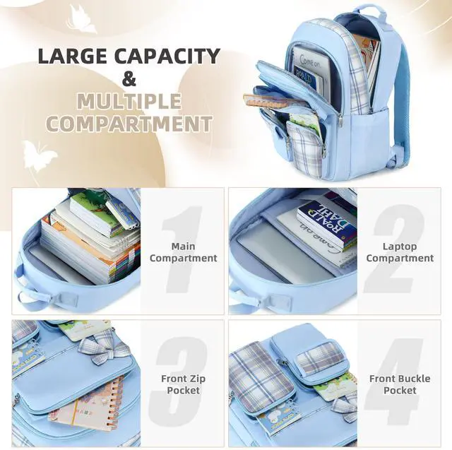 Girls Backpacks - Waterproof Material : Backpack for girls crafted from waterproof, ultra-lightweight,high density premium polyester fabric,light to carry.The zippers closure are used by the premium quality zippers to ensure the long lasting usage