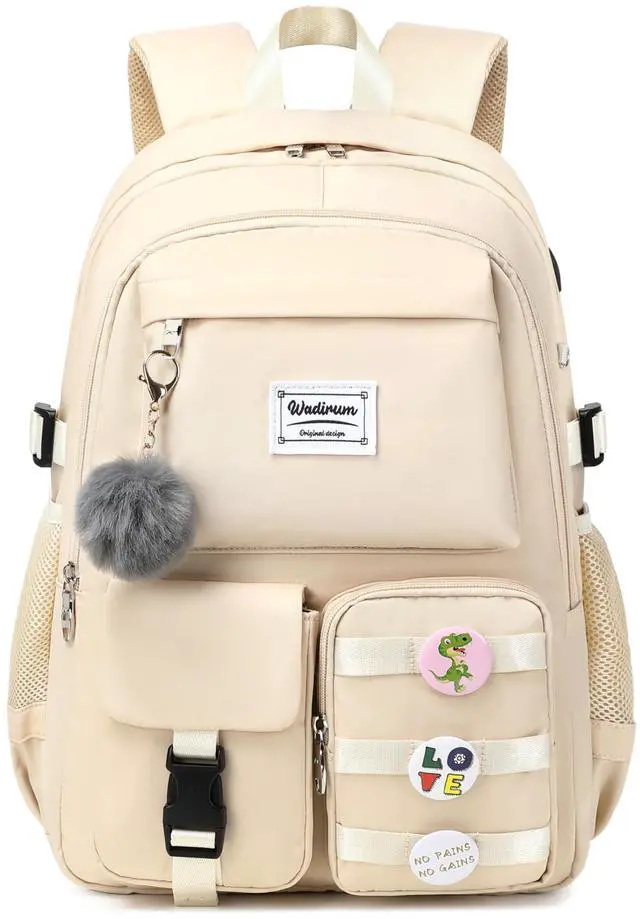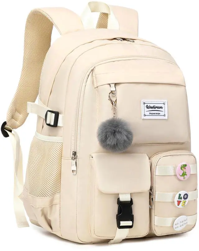 Wadirum Cute Laptop Backpack for Girl Fashion College Bag Women Backpack Purse Beige