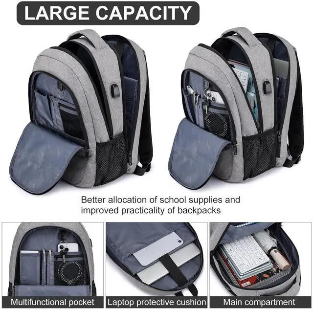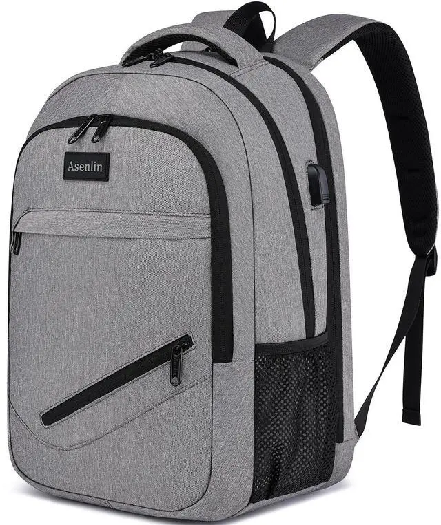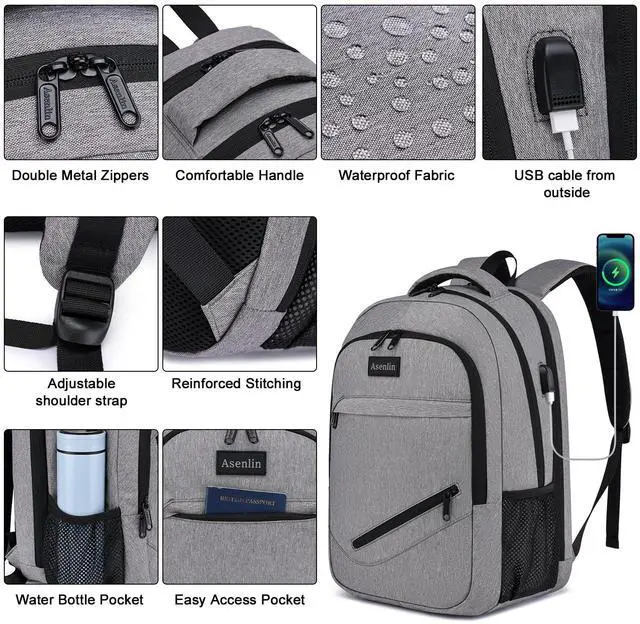 Asenlin Travel Laptop Backpack for Women & Men,Water Resistant Business Slim Sturdy Laptops Backpack with USB Charging Port,Fits 17.3 Inch Notebook College School Computer Bag-Grey