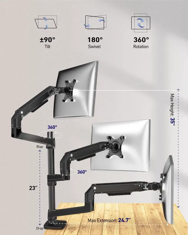Benefit Ourself As an ergonomic desk monitor mount, it's not only easy to install but also promotes our health and doubles our office efficiency by achieving the comfiest working position.
