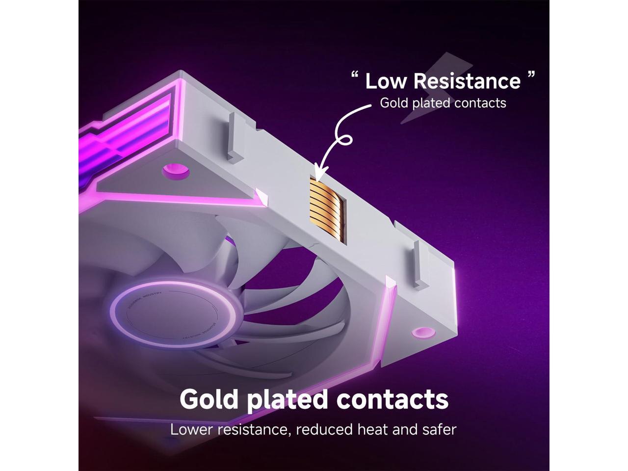- Ultra-Quiet & Stable OperationThickened and enlarged premium silicone pads effectively absorb vibrations, reducing noise to as low as 6 dB(A). Equipped with hydro bearings, it operates smoothly without noise. At the same time, pure copper connection components minimize resistance, reducing heat generation during operati