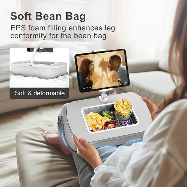 Comfortable StabilityThe beanbag, filled with polystyrene beads, conforms to uneven surfaces, providing stable support without pressure or discomfort on your lap.