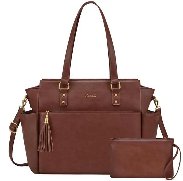 LOVEVOOK Laptop Tote Bag for Women 15.6 Inch Vintage Work Bag with Large Cup Holder, Waterproof Computer Teacher Bag