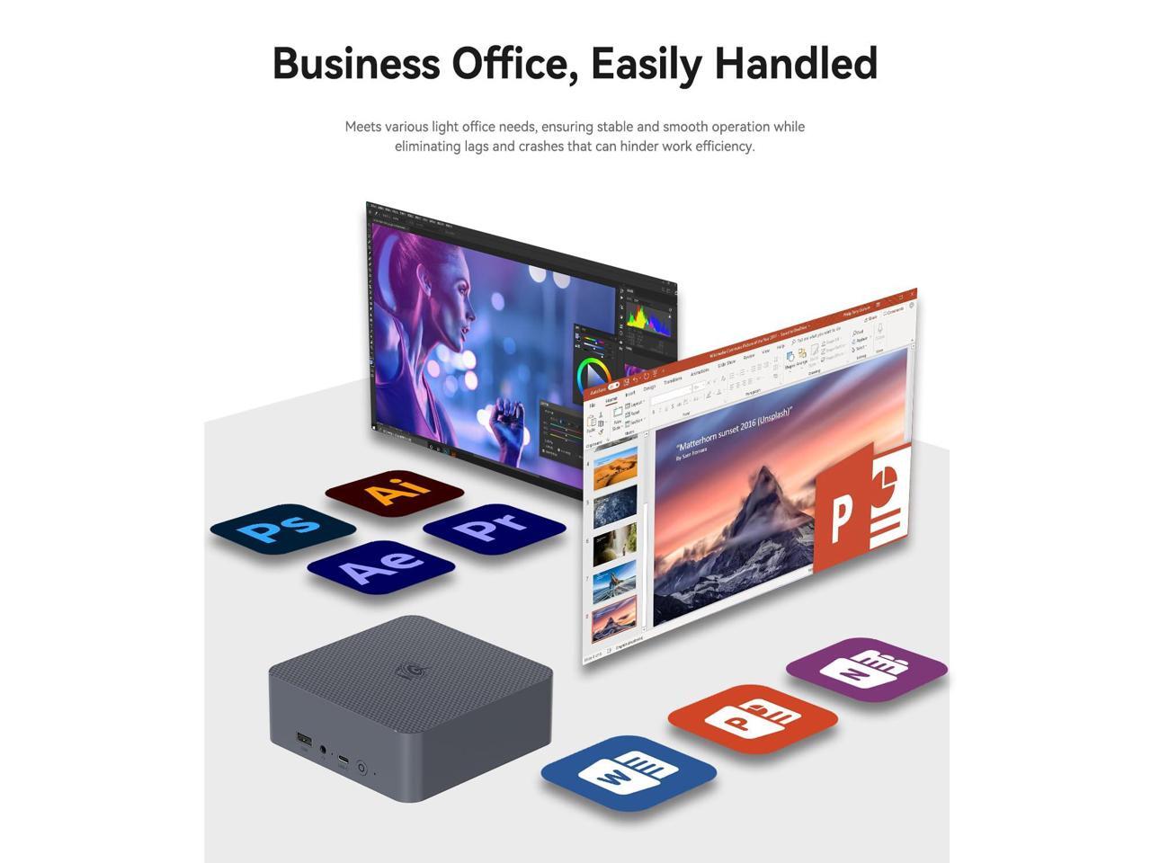 Dual Display Output & Support 4k Display Intel UHD Graphics eligible delivers powerful graphics processing. Dual display 4K@60Hz output via 2*HDMI, which enable you to multi-task easily. Fully capable of browsing the internet, use Microsoft Office, watch 4K vidoes, play games. They can Do-i