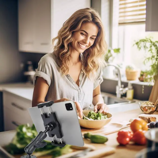 Adjustable: Derived from the B size ball mount system, this tablet mounts comes with two 1-inch round balls allowing free adjustment of the arm's height and angle. The 17mm connecting ball enables fine-tuning of the viewing angle, providing users with easy single-handed operation for maximum convenience.