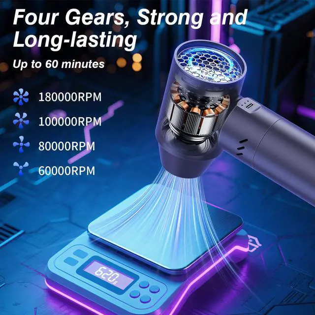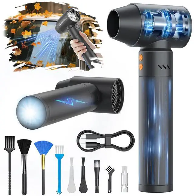[Ultra Power & Super Speed] XJUGEZ air duster compressed has a speed of up to 180,000 RPM to effectively remove dust and debris,electric air duster with 3500mAh*6 rechargeable batteries for long-lasting battery life, a perfect alternative to disposable compressed air can,more economical and environmentally friendly ,so that your cleaning work is long-lasting and efficient.