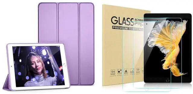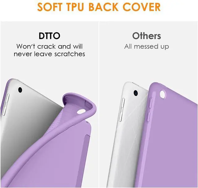 DTTO for iPad 9th/ 8th/ 7th Generation 10.2 Case, Lightweight Soft TPU Back for iPad 10.2 Inch (2021/2020/2019) with 2 Pack HD Clear Tempered Glass Screen Protector, Purple