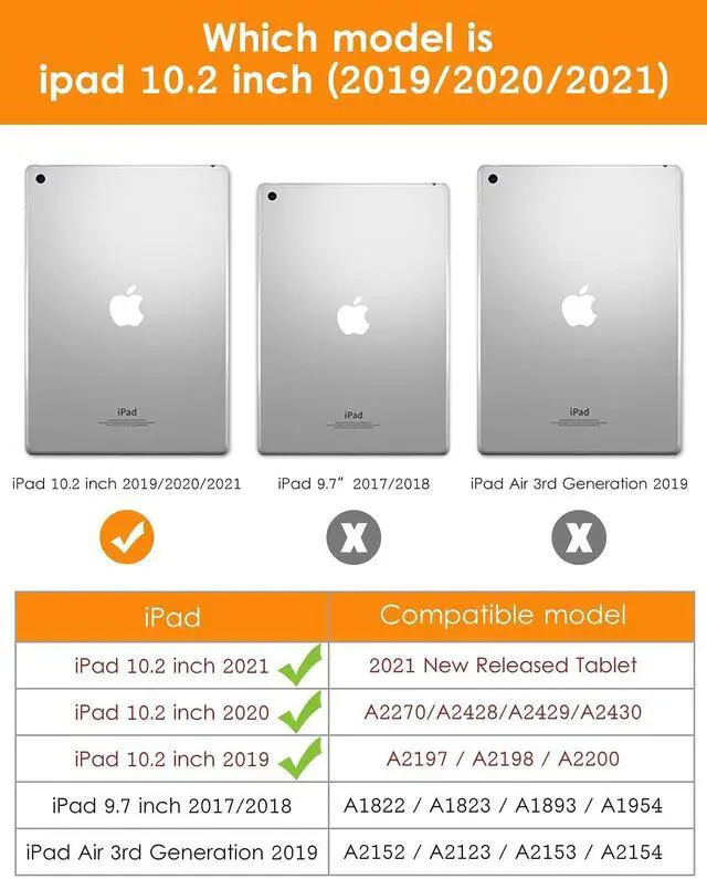 Tailor-making - Designed for the Apple iPad 9th /8th /7th Generation 10.2" 2021 & 2020 & 2019 Released (Model Number: A2602 / A2603 / A2604 / A2605 / A2428 / A2429 / A2270 / A2430 / A2197 / A2200 / A2198). Not Compatible with any Other iPad Model.