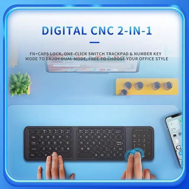 Tri-Fold Design & Ultra-ThinCompact and lightweight, this keyboard folds into a small size, making it easy to carry in your bag or pocket. Perfect for travel, work, or home use. Wide CompatibilityWorks seamlessly with Windows, Mac, iOS, and Android devices. Ideal for tablets, smartphones, and laptops. Connect 3 Devices SimultaneouslyEasily switch between three connected devices with a simple shortcut, enhancing your multitasking efficiency. Silent Typing ExperienceDesigned with low-profile keys, this keyboard provides a quiet and comfortable typing experience, perfect for libraries, offices, or late-night work.