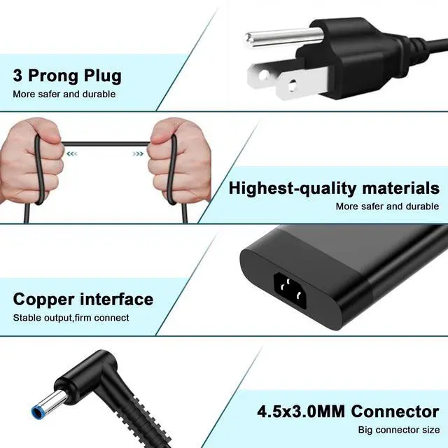 Power Specs:Input : 100-240V 50-60Hz, Output: 19.5V-10.3A, Watt:200W Also Compatible with 150W 135W 120W,Connector Size:4.5mm 3.0mm Blue Tipplease check your laptop specifications before buy it.