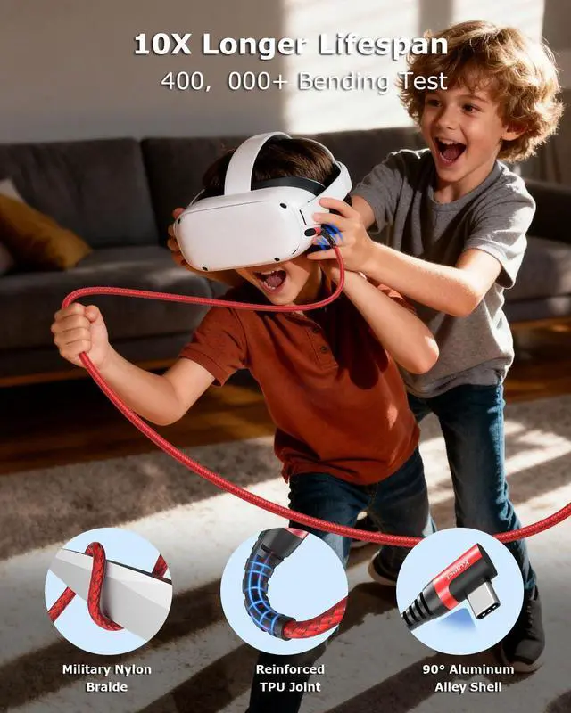 Kuject Link Cable 20FT Compatible for Quest 3S/3, Quest 2/Pro, Pico 4, Nylon Braided Accessories for Rift S/Steam VR Games, USB 3.0 Type C to C High Speed Data Transfer Cord for Gaming PC, Red