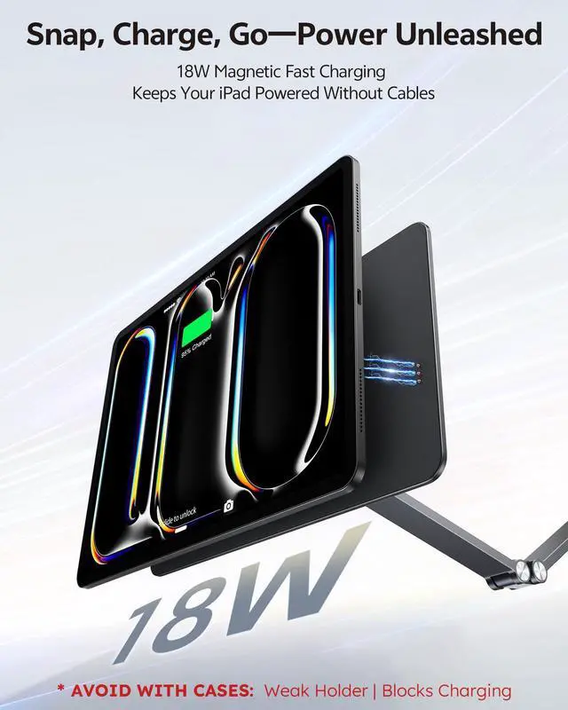 [Designed for iPad Pro 12.9/iPad Air M3/M2] This wireless charging magnetic iPad stand is exclusively compatible with the iPad Pro 12.9"/iPad Air 13" M3(2025)/iPad Air M2(2024) model. Specially provide high-quality charging experience and perfect magnetic fit for iPad Air M3/M2 devices. Free your hands, provide great convenience and bid farewell to messy desk supplies.* Not suitable for other iPad models, please make sure the right ipad model before ordering. NOT SUPPORT for iPadOS Beta Version