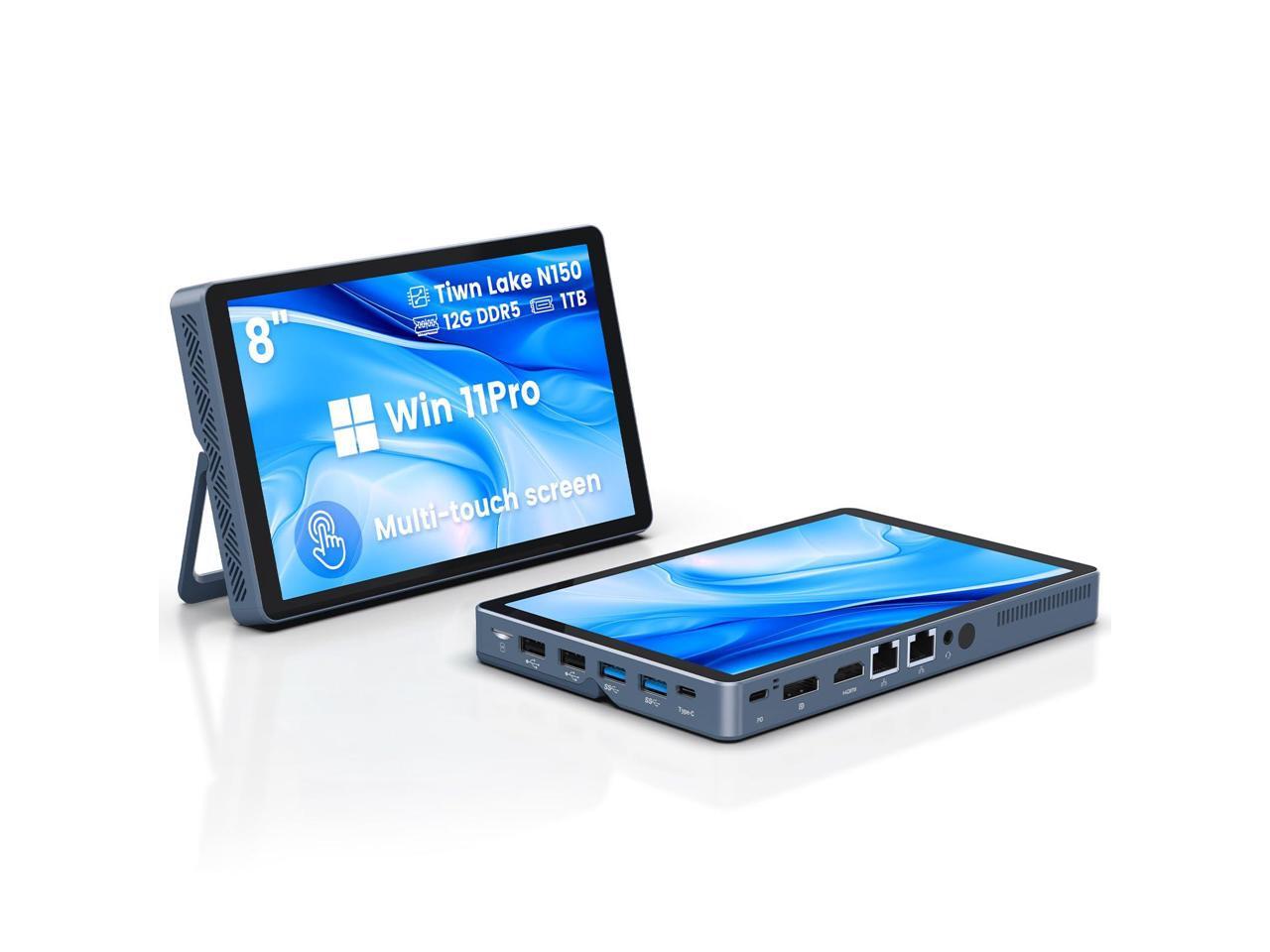 KOOSMILE Mini PC N150(up to 3.6GHz), 12GB DDR5 RAM 256GB/512GB/1TB M.2 SSD Mini PC with 8-Inch Touchscreen 4K Dual Display,WIFI6,BT5.2,12 Ports, All-in-One Mini Computer(N150-12GB+1TB)