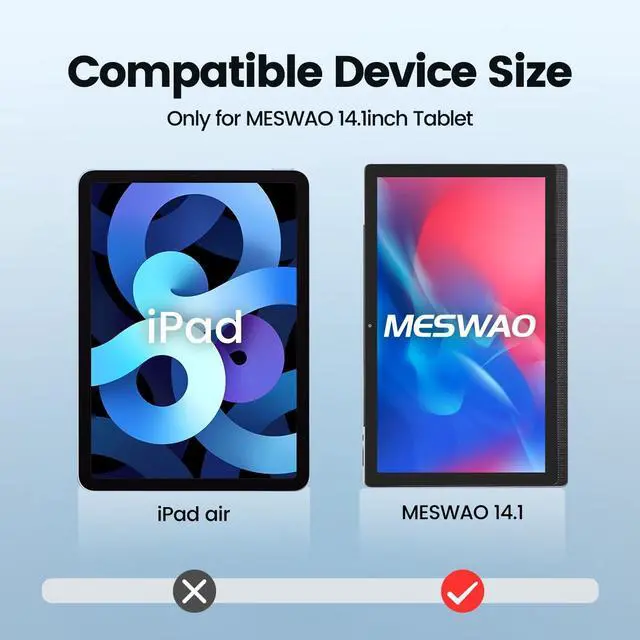 Compact Device Size: Please check your tablet model first, not fit for ipad or any other tablet. Only compatiable with android tablet 14.1 inch. Just kindly check your tablet model before purchase.