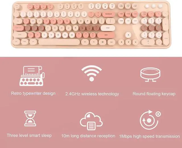 Keyboard and Mouse Combo, Colorful Round Key Typewriter Keyboard with Number Pad, 104 Keys Ergonomic Kawaii Keyboard for Home Office Work Gaming(Sweet Milk Tea Color Mixed