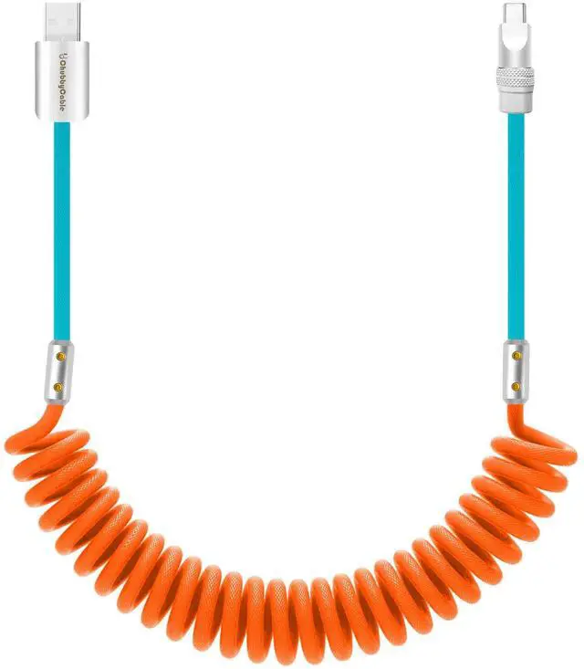chubbycable Curly Chubby 120W Coiled USB C Cable Retractable Fast Charging Cable for Car Charger Cord Compatible with iPhone 17-15 Series, Orange+Light Blue, USB-A to Type-C, 2.29FT-3.6FT