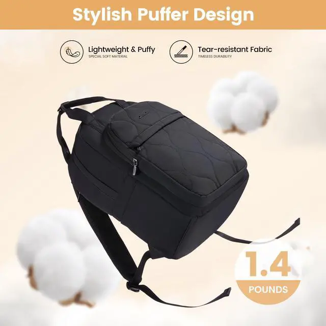 Lightweight and Quilted DesignThis fuffy backpack purse for women,is made of highly durable and waterproof padded cotton material,which is lightweight and holds up very well through a ton of wear and tear.The quilted backpack looks stylish and is different from typical computer bag.