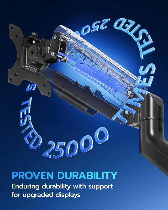 Durability and StrengthAres Wing Monitor Mount supports up to 26.4 lbs and fits max 40-inch ultrawide curved screen displays, ideal for gaming setup and office workstation. Its internal mechanical spring undergoes 25,000+ fatigue tests, ensuring long-lasting stability for heavy-duty use.