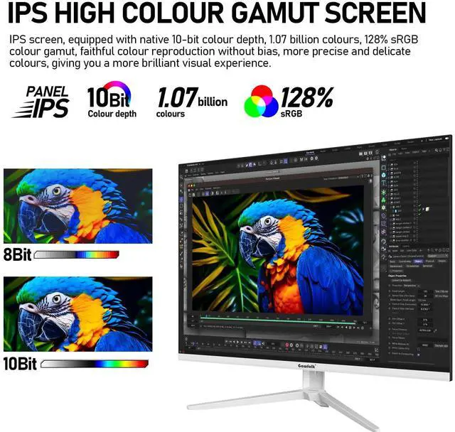 10-Bit Wide Color Gamut for Accurate and Vivid Color ReproductionSupporting 10-bit color depth, it can display up to 1.07 billion colors. Combined with 128% sRGB wide color gamut coverage, it ensures rich and precise color performance. Whether for professional photo retouching, video editing, or watching color-rich movies, it presents natural and smooth color transitions, meeting the needs of professional creation and entertainment.