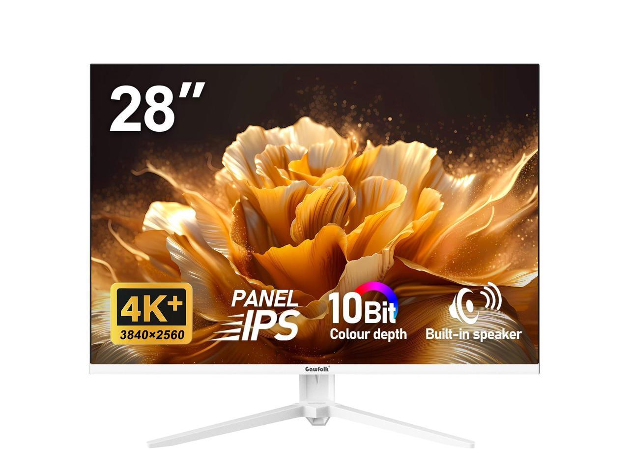 Gawfolk 28-inch UHD 4K Computer Monitor, IPS Ultra HD (3840×2560p) Screen, 3:2, 10Bit, 1.07 Billion Colours, 128% sRGB, Built-in Speakers, 178° Wide Viewing Angle DisplayPort, HDMI, White