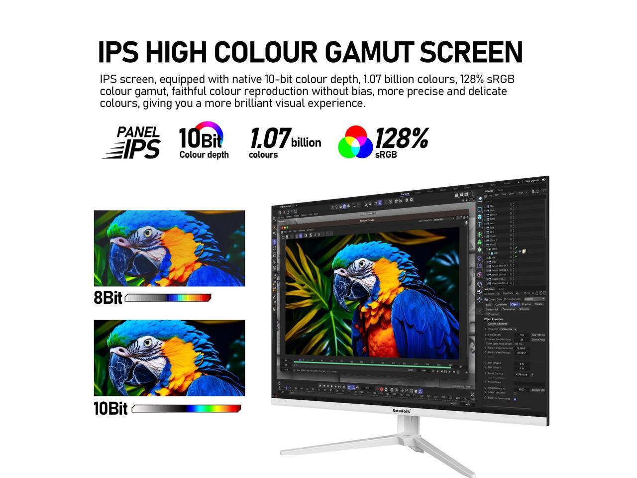- 10-Bit Wide Color Gamut for Accurate and Vivid Color ReproductionSupporting 10-bit color depth, it can display up to 1.07 billion colors. Combined with 128% sRGB wide color gamut coverage, it ensures rich and precise color performance. Whether for professional photo retouching, video editing, or watching color-rich movies, it presents natural and smooth color transitions, meeting the needs of professional creation and entertainment.