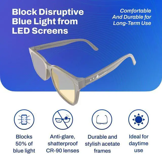 ULTIMATE BLUE LIGHT PROTECTION FROM SCREENS CR-90 lenses are lightweight and shatterproof. Lens filter blocks 100% of UV light. Anti-smudge coating help lenses remain clear for all-day use. Anti-glare coating helps eliminate reflections from the front and back surfaces of the lenses