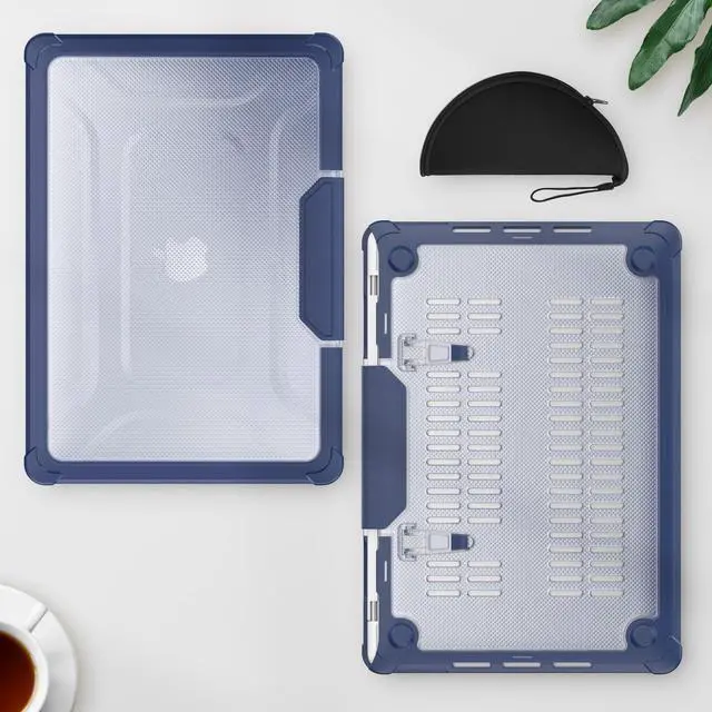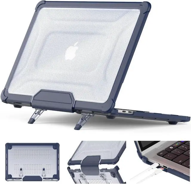 • Foldable Kickstand : Designed with anti-slip sturdy kickstand, which gives a nice height adjustment to prop the laptop up, offering a more friendly typing angle and viewing angle. The vents on the bottom can also help the heat dissipation, comfortable for daily use, the built-in stand can be folded up when not in use.