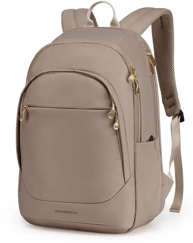 LIGHT FLIGHT Travel Laptop Backpack Women, 17.3 Inch Laptop Backpack with USB Charging Hole, Water Resistant College Bookbag, Black Computer Backpacks for Work, champagne