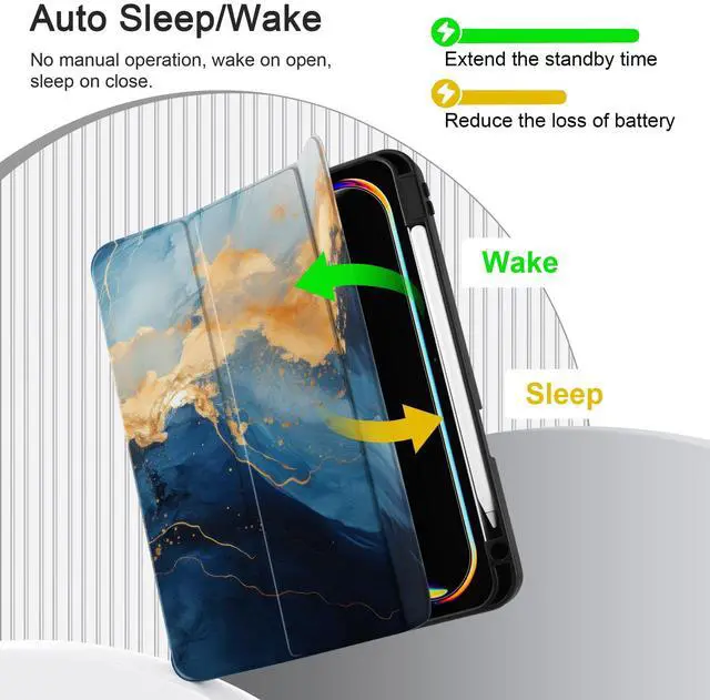 5. Support auto wake/sleep, it automatically wakes your tablet when opened and puts it to sleep when closed.