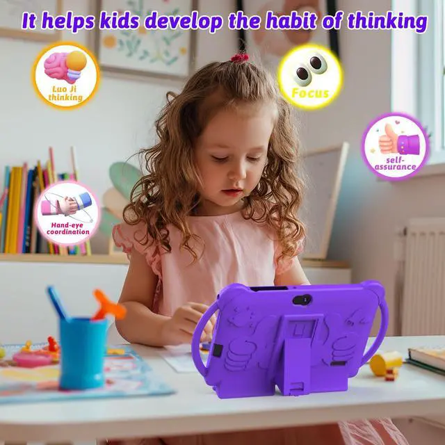 4GB +32GB Performance Kids TabletTablet adopt 4GB RAM, 32GB ROM, Android 12 system. Large capacity RAM and new System, ensures the fast speed when open apps and multi task. 1024x600 IPS display, Wifi, Bluetooth, front 2.0 + back 5.0MP HD Camera. Dual Speaker, 3.5 mm headphone jack. Pre installed kids apps, Specially designed for different age kids.