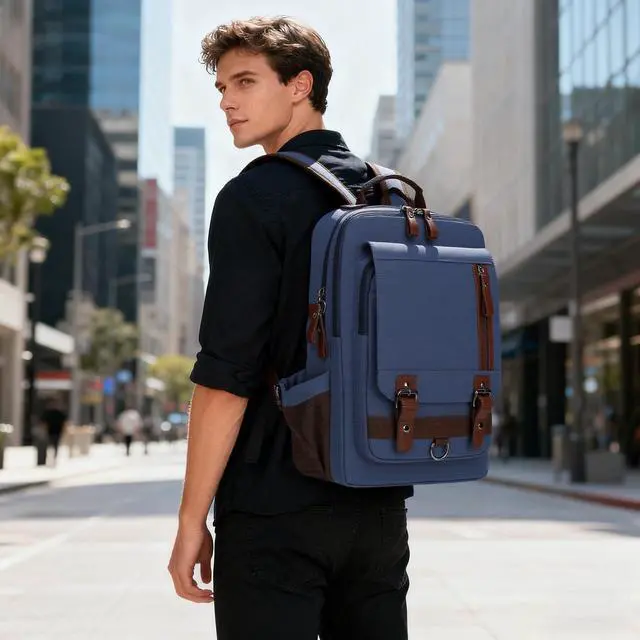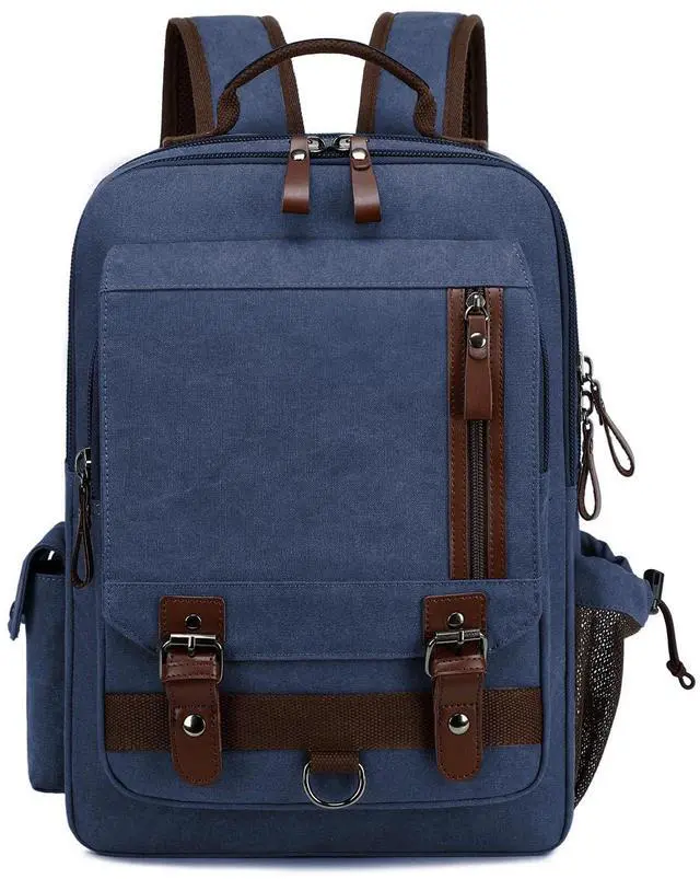 Lanola Water-resistant Canvas Backpack with Anti-Theft Pocket, Daypacks Fits 15.6 Inch Laptop for Men Perfect for Work, Travel, Daily Use (Dark Blue)