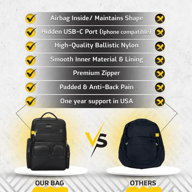 , Made with high-quality ballistic nylon, ergonomic padded shoulder straps, breathable EVA foam back support, and convenient luggage straps, this laptop backpack offers lasting comfort and reduces shoulder strain. It's the ultimate choice for professionals needing a reliable, comfortable bag.